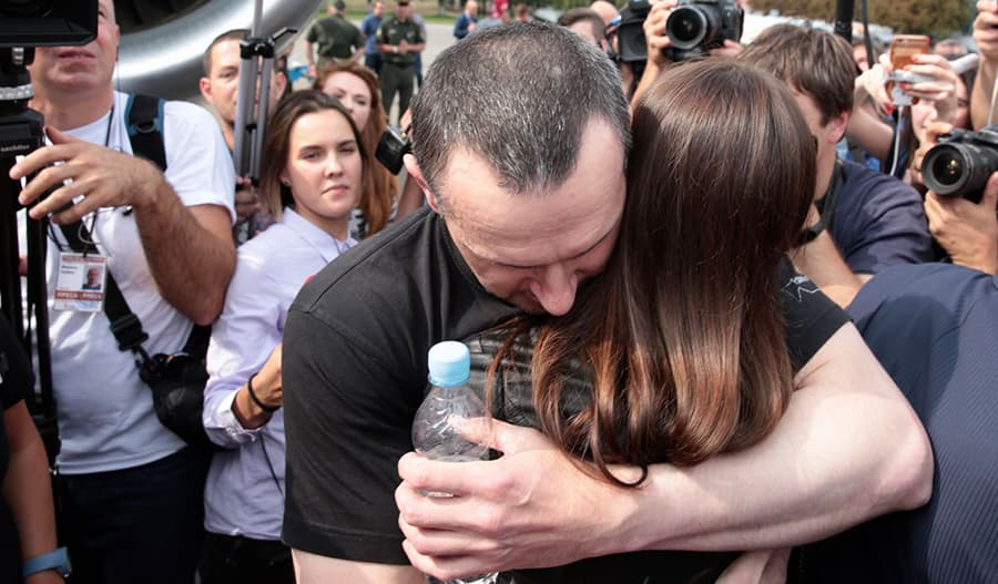 Oleg Sentsov on viimein vapaa! Ukrainalainen elokuvaohjaaja astui lauantaina 7.9. takaisin Ukrainan maaperälle, kun Venäjä ja Ukraina viimeistelivät huhuissa liikkuneen vankienvaihdon. Vankienvaihdossa vapautui myös muun muassa 24 ukrainalaista merimiestä, jotka vangittiin Krimillä viime vuonna.