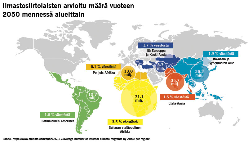 Infografiikka: Ilmastosiirtolaisten arvioidut määrät alueittain vuoteen 2050 mennessä