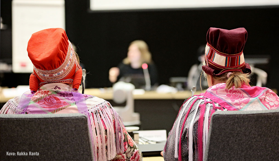 Saamelaiskäräjät on saamelaisten itsehallintoelin ja se kokoontuu saamelaiskulttuurikeskus Sajoksessa Inarissa. Käräjien tehtävä on toteuttaa saamelaista kulttuuri-itsehallintoa sekä turvata saamelaisen alkuperäiskansakulttuurin säilyminen ja kehittyminen perustuslain mukaisesti. Kuva: Kukka Ranta